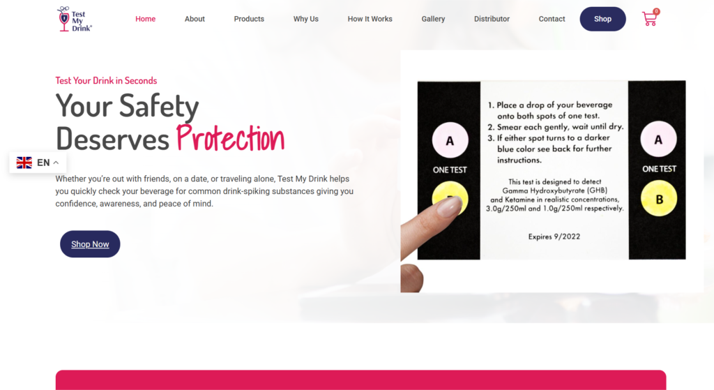 Test My Drink is a digital safety platform designed to help individuals detect drink tampering and prevent drink spiking. The website serves as both an awareness hub and an eCommerce platform, offering testing kits and safety products worldwide. Techoven Solutions was approached to design and develop a modern, user-friendly website that communicates trust, reliability, and social responsibility while supporting online sales and customer engagement. Our goal was to create a strong digital presence that educates users, promotes safety, and delivers a seamless shopping experience.
