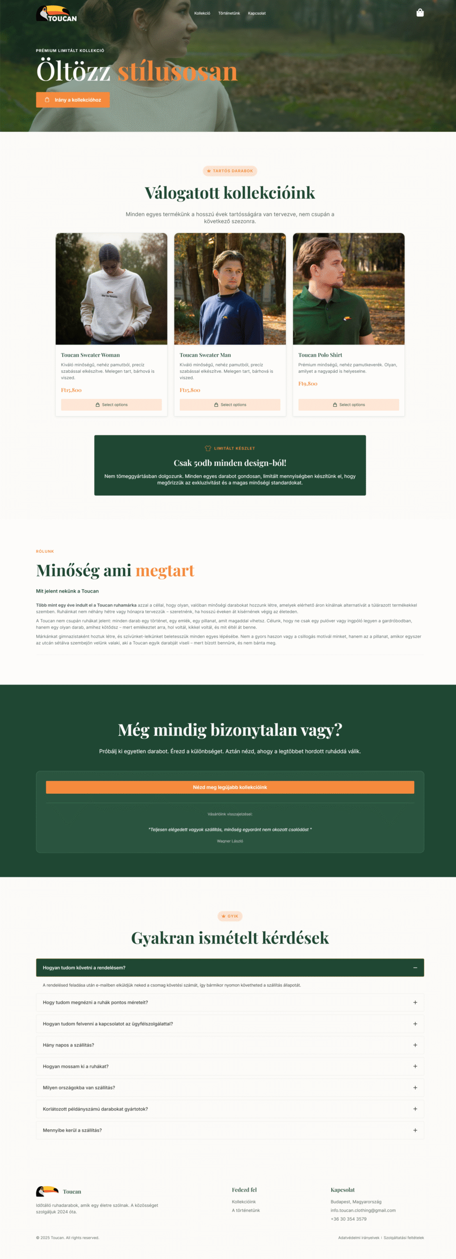 This project involved designing and developing a responsive and visually engaging website for Toucan.hu, an online platform aimed at showcasing products and services with clarity and ease of navigation. The site was built to provide visitors with a streamlined browsing experience that reflects the brand’s identity and supports its business objectives in the digital space.