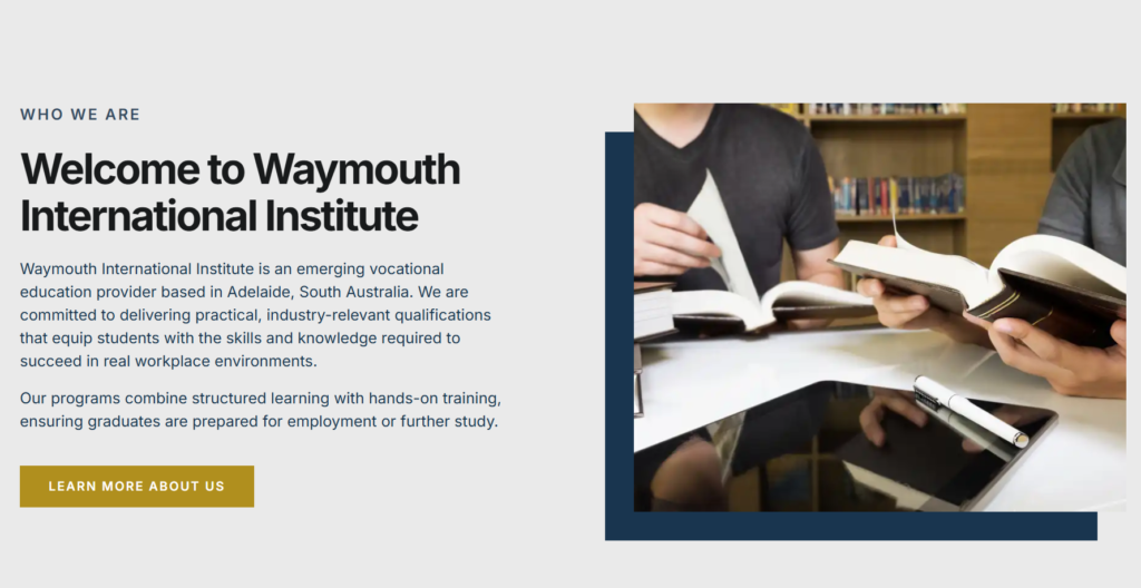 This project focused on designing and developing a professional education website for Waymouth International Institute, a vocational training provider offering practical and career-focused programs. The goal was to create a modern online platform where prospective students can easily explore available courses, understand the institute’s mission, and enquire about enrolment. Techoven Solutions built a clean and structured website that highlights the institute’s commitment to practical learning and industry-aligned training. The design emphasizes clarity and accessibility so that both local and international students can quickly understand program offerings and take the next step toward starting their education journey.